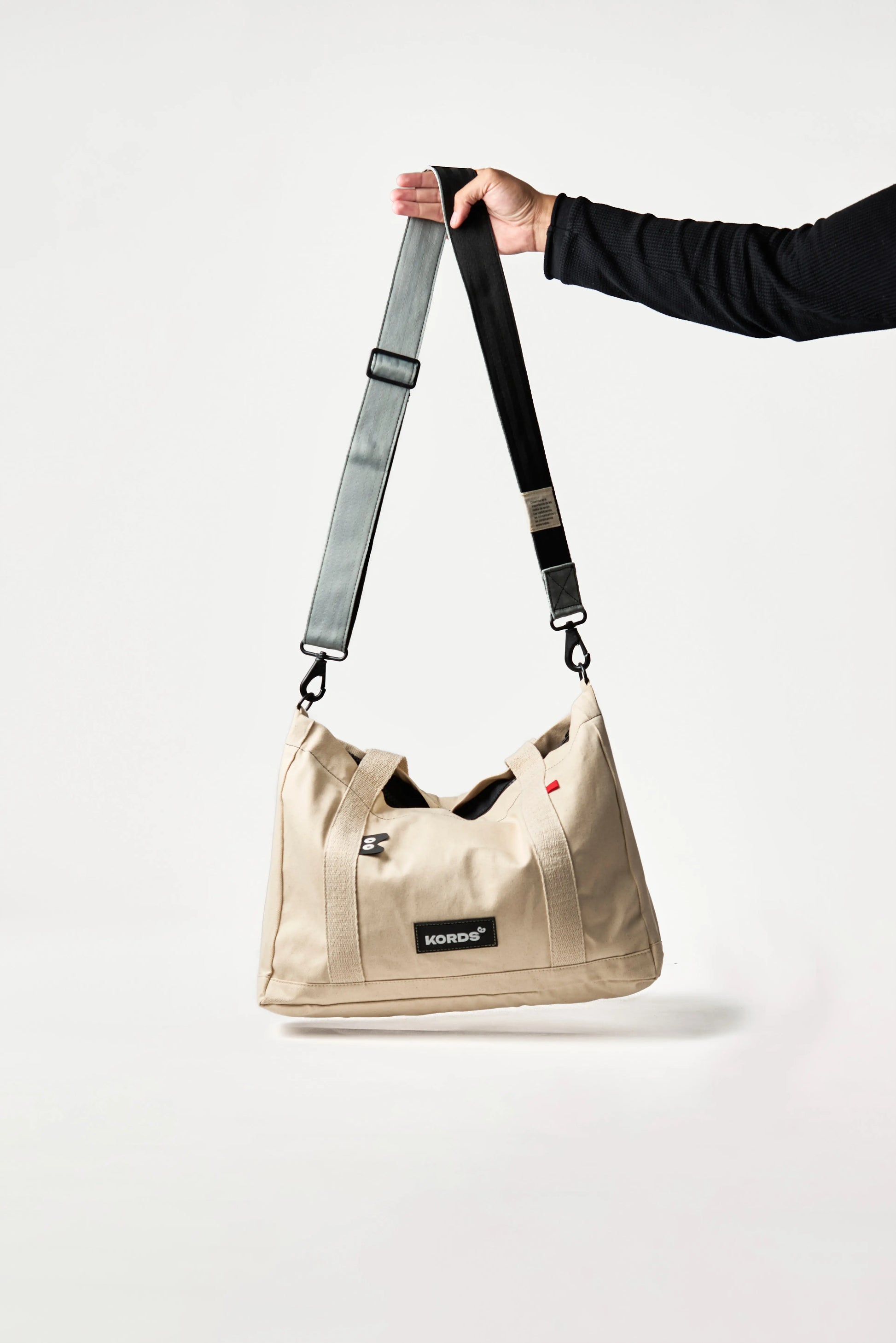 Sí. Está fabricada en drill 100% algodón de alta resistencia, pensado para el uso diario. Las correas son reatas en algodón resistente, no se deslizan ni tallan en el hombro. El forro oscuro protege lo que llevas, evitando manchas y manteniéndola siempre limpia.