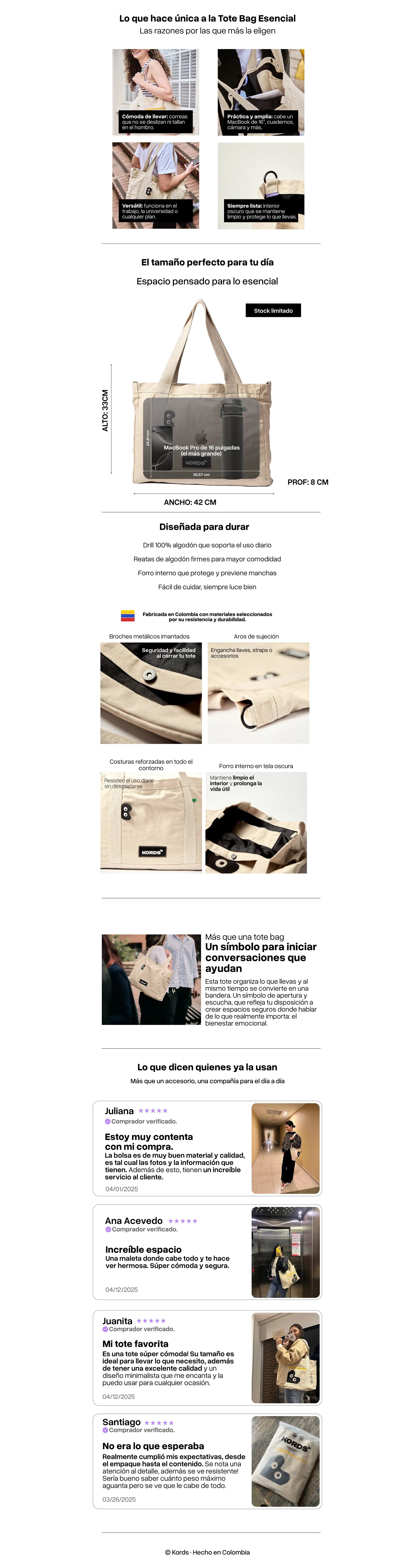 La Tote Bag Esencial está hecha en Colombia con los mejores materiales y representa algo más grande: una bandera que refleja tu disposición a abrir espacios seguros y conversaciones sobre bienestar emocional.