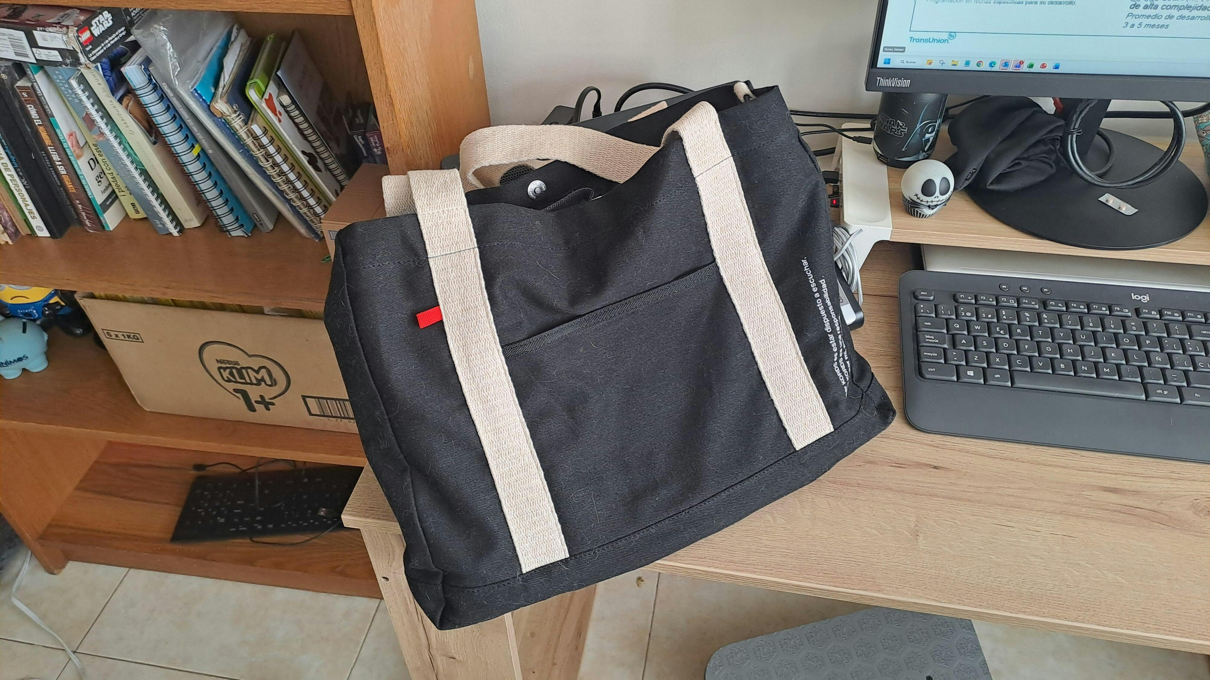 Sí. Está fabricada en drill 100% algodón de alta resistencia, pensado para el uso diario. Las correas son reatas en algodón resistente, no se deslizan ni tallan en el hombro. El forro oscuro protege lo que llevas, evitando manchas y manteniéndola siempre limpia.